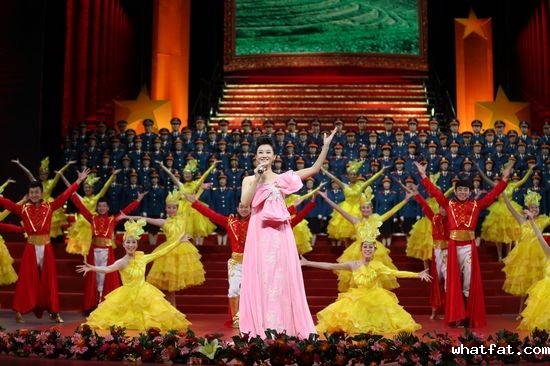 歌声不断,掌声不断。歌唱家郭兰英的一幕深情回忆和将军后代合唱团演绎的《我的祖国》片段,把观众带到了曾经的峥嵘岁月。50多年前,电影《上甘岭》插曲《我的祖国》风靡神州大地。如今,歌唱家再次登上舞台,讲述经典承载的那一份历史的记忆和情感。而在主办方设计的特别节目里,当年电影《洪湖赤卫队》中韩英的扮演者、歌唱家王玉珍也来到了现场。为了此次演出,她不仅专门定做了韩英的服装,还带来了祝福感言。她说:“每次走上舞台,我感觉就像鱼和水、莲和蓬那样相依相融,因为在这些激情燃烧的岁月里,我演唱的是音乐,跟着的是共产党。”